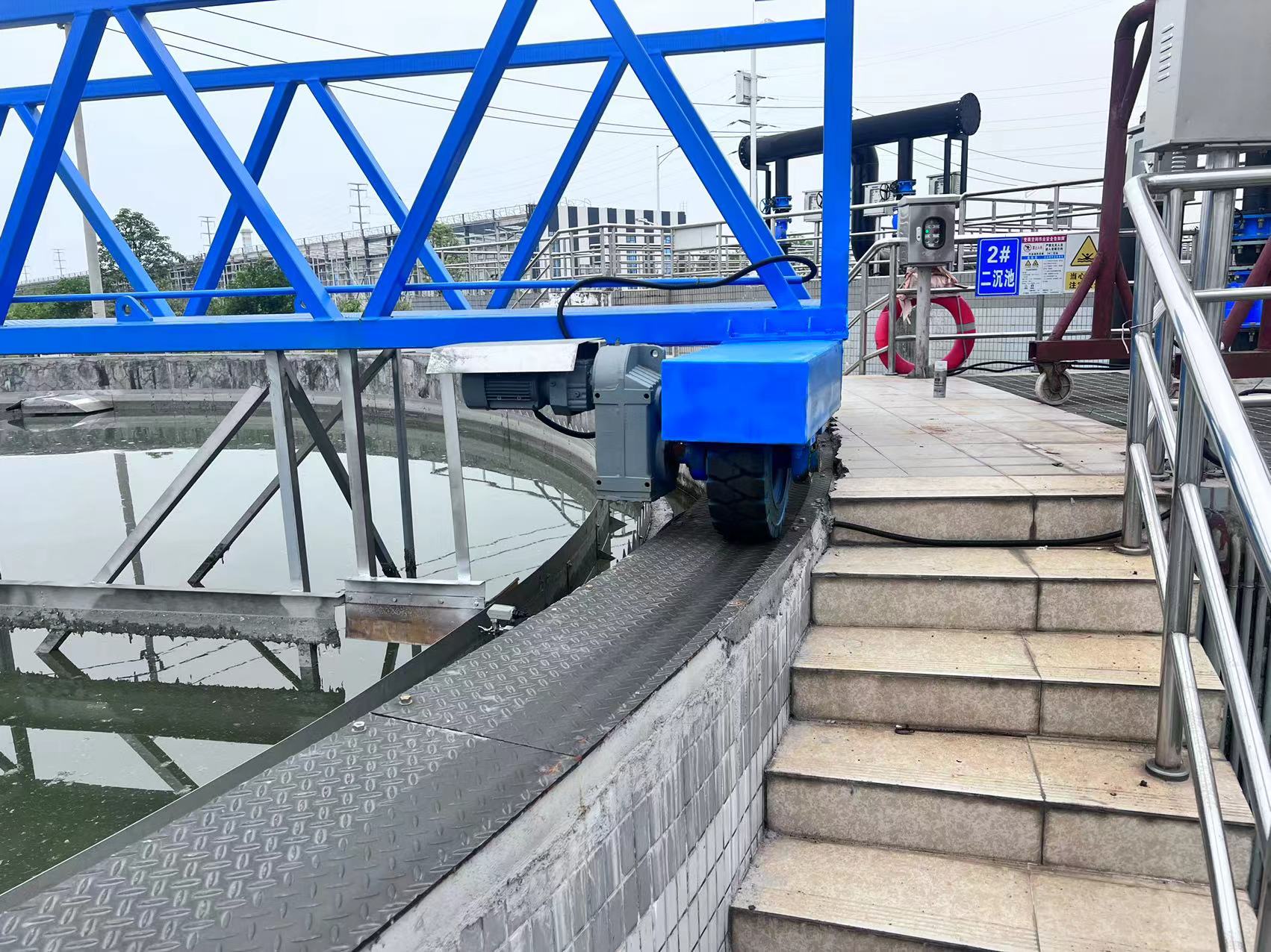 垂架式中心传动刮吸泥机适用于中心进水、周边出水、中心排泥的重、大型池径的辐流式沉淀池,主要用于城镇污水处理厂二次沉淀池的排泥。