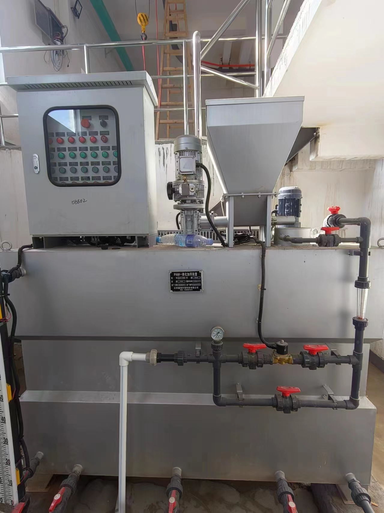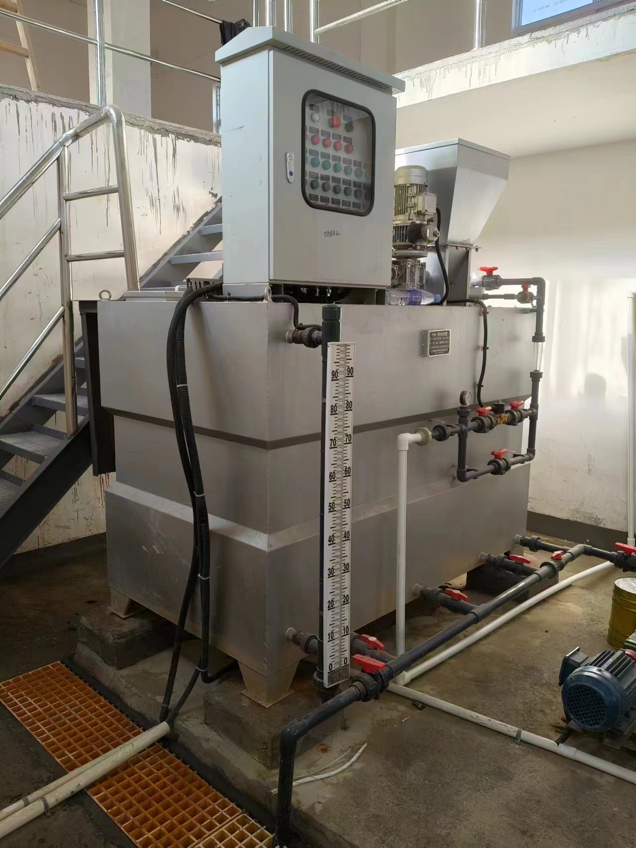A、计量箱:也叫溶液箱、溶解箱,容积1.0m3,直径1000mm,不锈钢材质。主要附件有磁浮子液位计、玻璃管液位计及搅拌器。