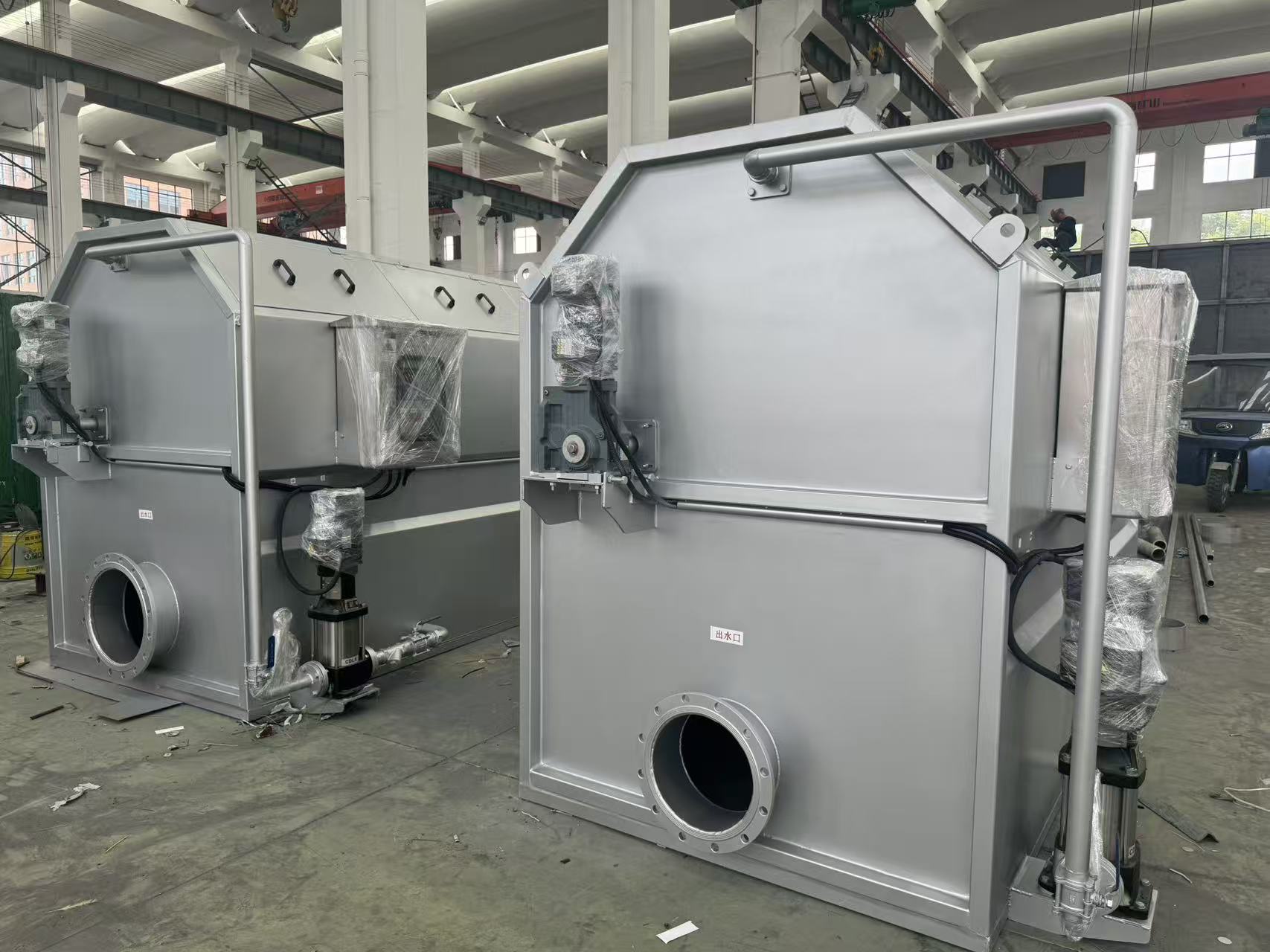 转鼓式精密过滤器为连续过滤,当滚筒内有水进入时,自控系统将启动驱动系统驱动滚筒转动,同时启动反冲洗泵。滚筒开始缓慢转动,反冲洗泵抽取滤后出水对滤网进行反冲洗。冲洗下来的颗粒物质由设备内部的反冲洗水收集槽收集,并通过排污管排出设备。反冲洗的同时,过滤正常运行。当无水通过设备时,设备将自动止。反冲洗水采用已过滤水,水量为1-6m³/h,水压为0.6Mpa。