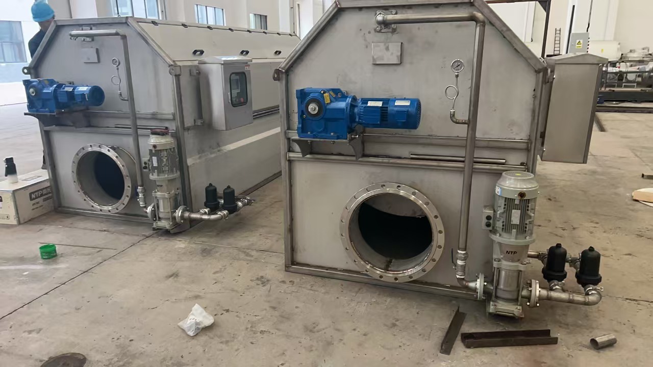 转鼓式精密过滤装置外壳由304不锈钢制造,包括中心进水管、转筒、联动齿轮、转动轴承、密封件等装配主件。