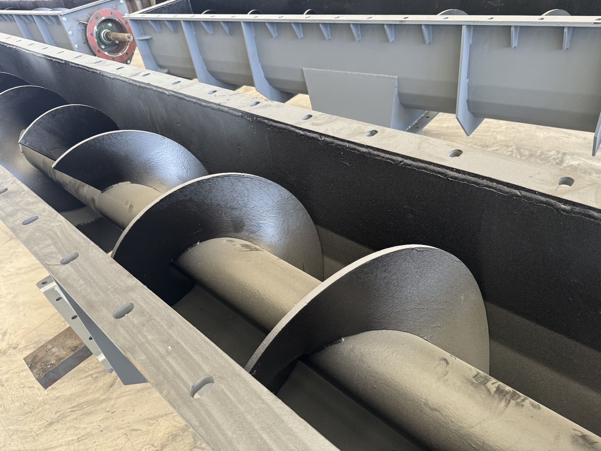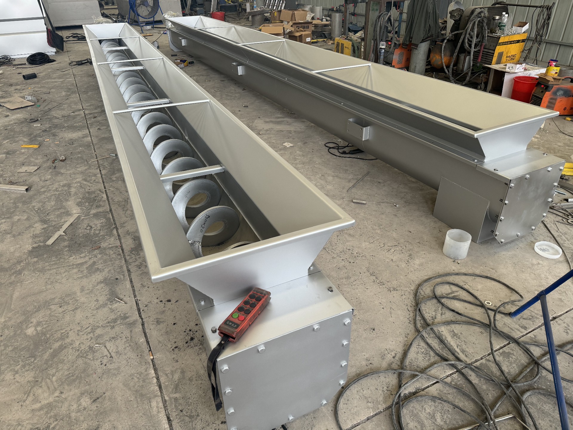 无轴螺旋输送机主要由驱动装置、输送螺旋。U型槽、衬板、进料口等组成,物料由进料口进入,经螺旋逐渐推移至出口,完成输送过程。